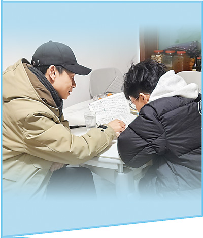 文店村驻村第一书记郭菲(左)在村民家中给孩子辅导功课。本报记者 宋豪新摄