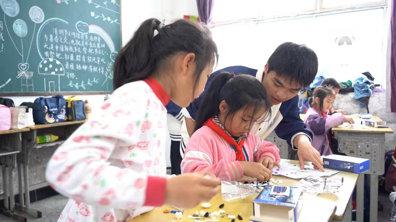 孝彭书院的同学们充分发挥专业优势,针对乡村教育特点设计分层教学方案。科普课堂上,低年级孩子通过动画演示理解飞行原理,用彩纸折叠出承载梦想的纸飞机;高年级孩子则在乐高飞机拼装竞赛中探索空气动力学奥秘。当经过精密调试的纸飞机在飞行挑战赛中划出优美弧线时,操场上的欢呼声响彻云端。