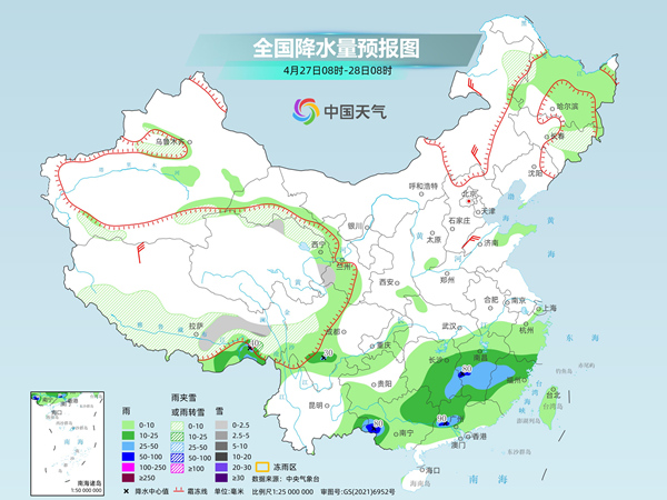 中央气象台预计,今天,内蒙古东北部、新疆南疆盆地、西藏东北部和南部、青海大部、甘肃河西、川西高原北部等地部分地区有小到中雪或雨夹雪,其中,黑龙江西北部、青海东北部等地部分地区有大到暴雪。辽东半岛、西藏东南部、贵州中东部、湖南中北部、广西东北部、广东西北部等地部分地区有中到大雨,其中,湖南西部等地局地有暴雨。