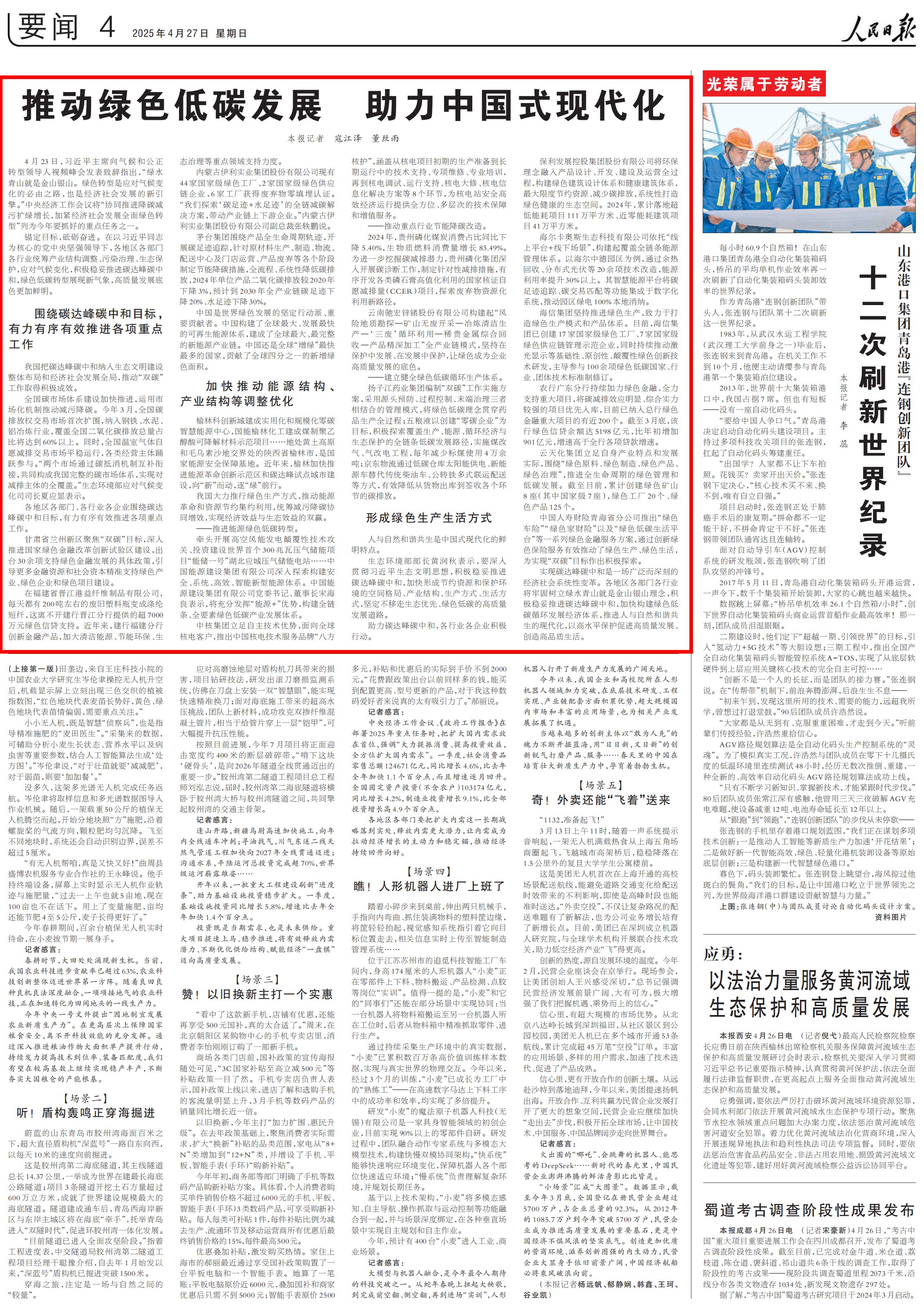 内蒙古伊利实业集团股份有限公司现有44家国家级绿色工厂、2家国家级绿色供应链企业,6家工厂获得废弃物零填埋认证。“我们探索‘碳足迹+水足迹’的全链减碳解决方案,带动产业链上下游企业。”内蒙古伊利实业集团股份有限公司副总裁张轶鹏说。