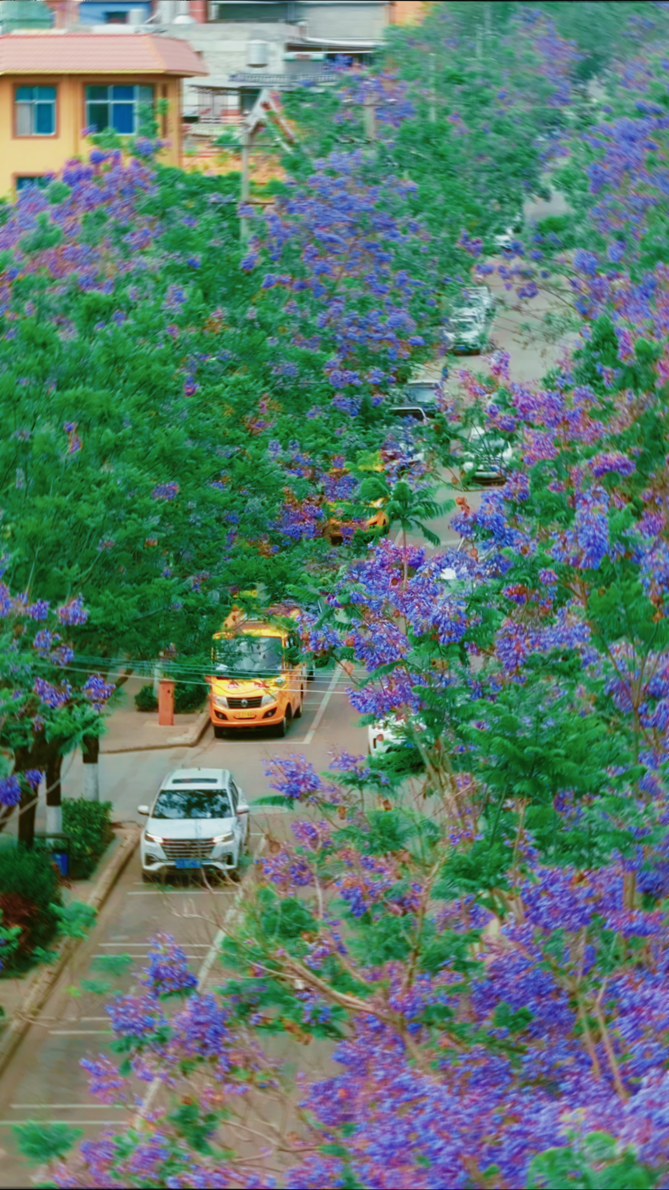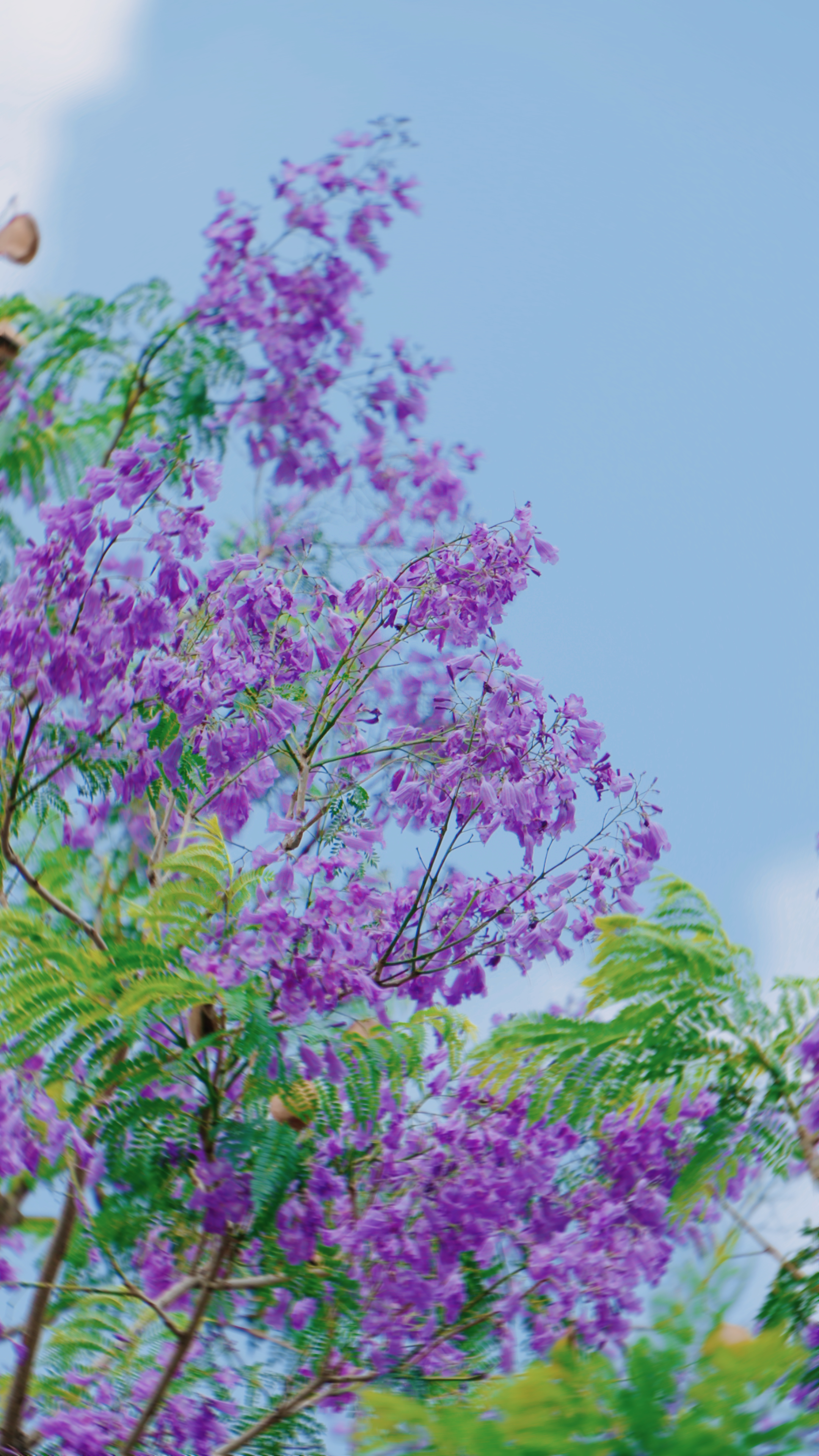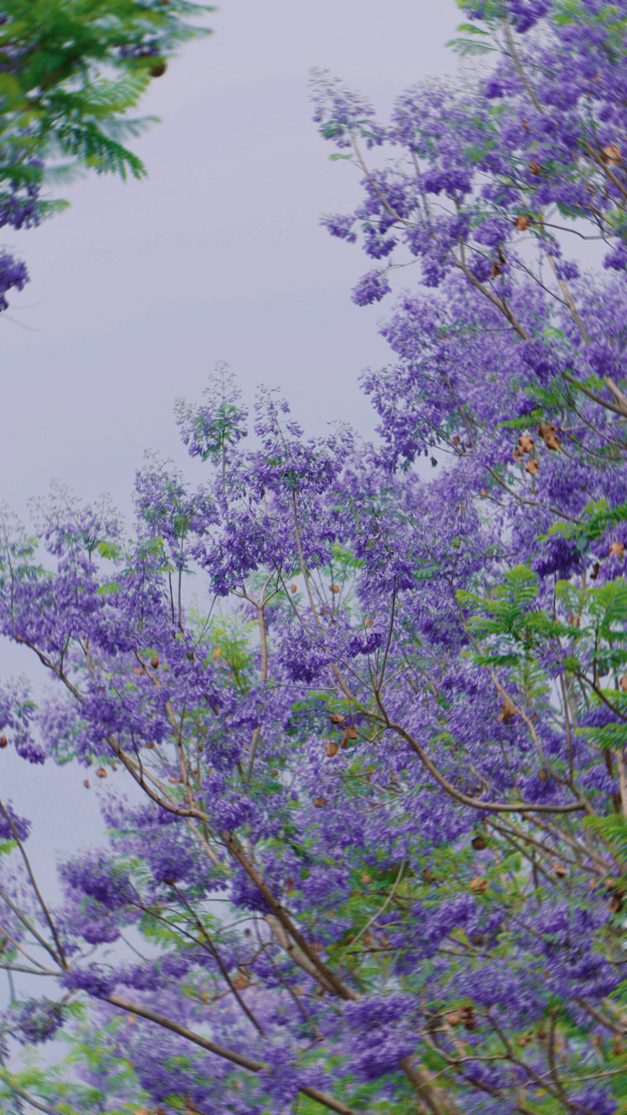 浪漫紫与淡雅绿交织,蓝花楹开成流动的油画
