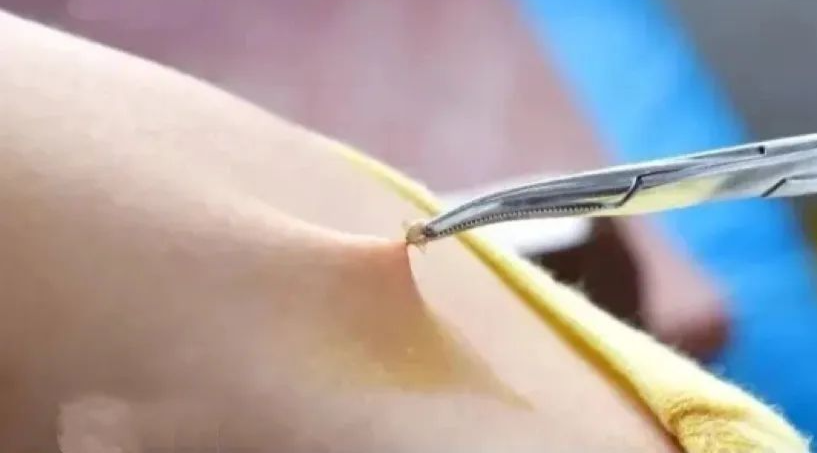由于蜱虫的口器部分有倒刺,刺入皮肤吸血后很难拔出。如果蜱虫深入皮肤,请尽快到正规医院处理。