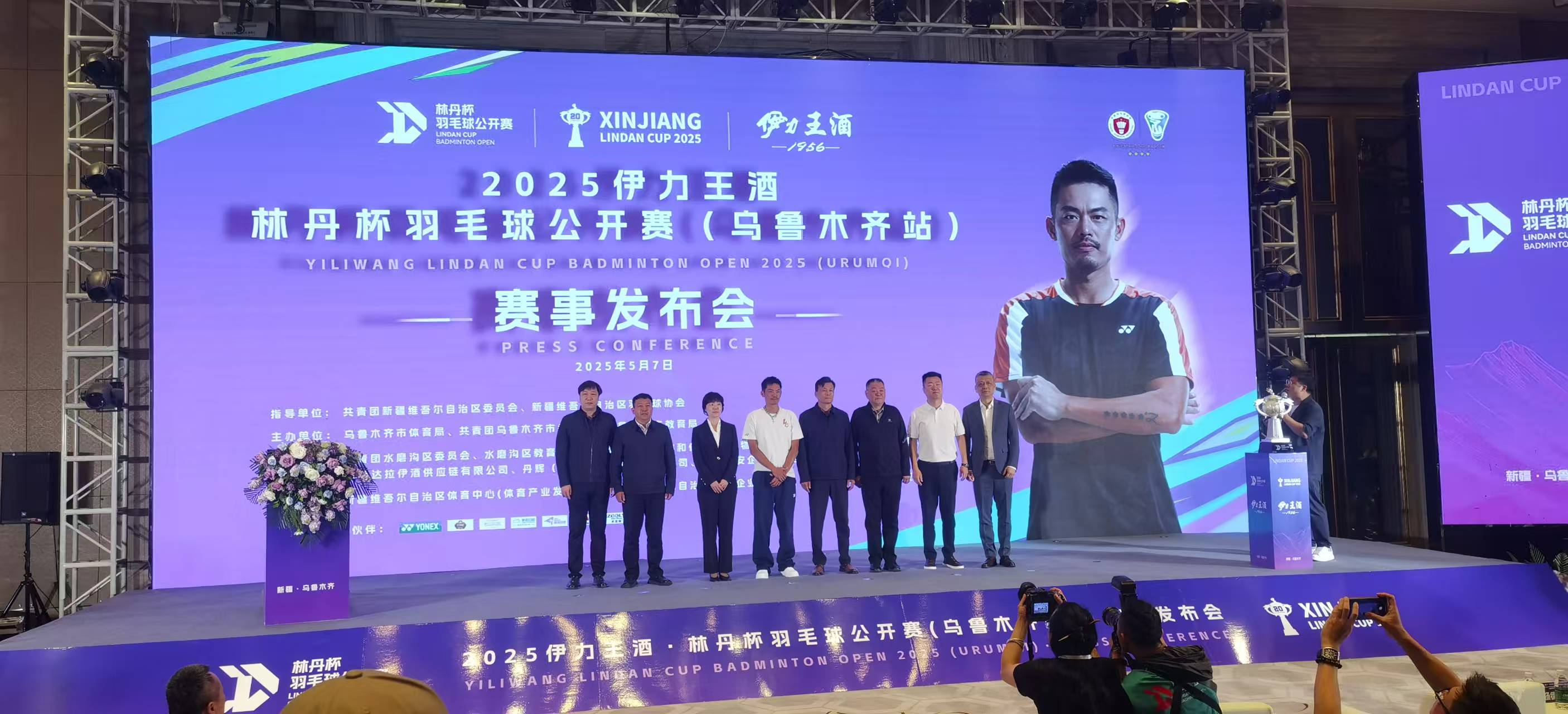 5月7日,2025伊利王酒·林丹杯羽毛球公开赛(乌鲁木齐站)赛事发布会在乌鲁木齐隆重举行。 记者 胡仁巴 摄