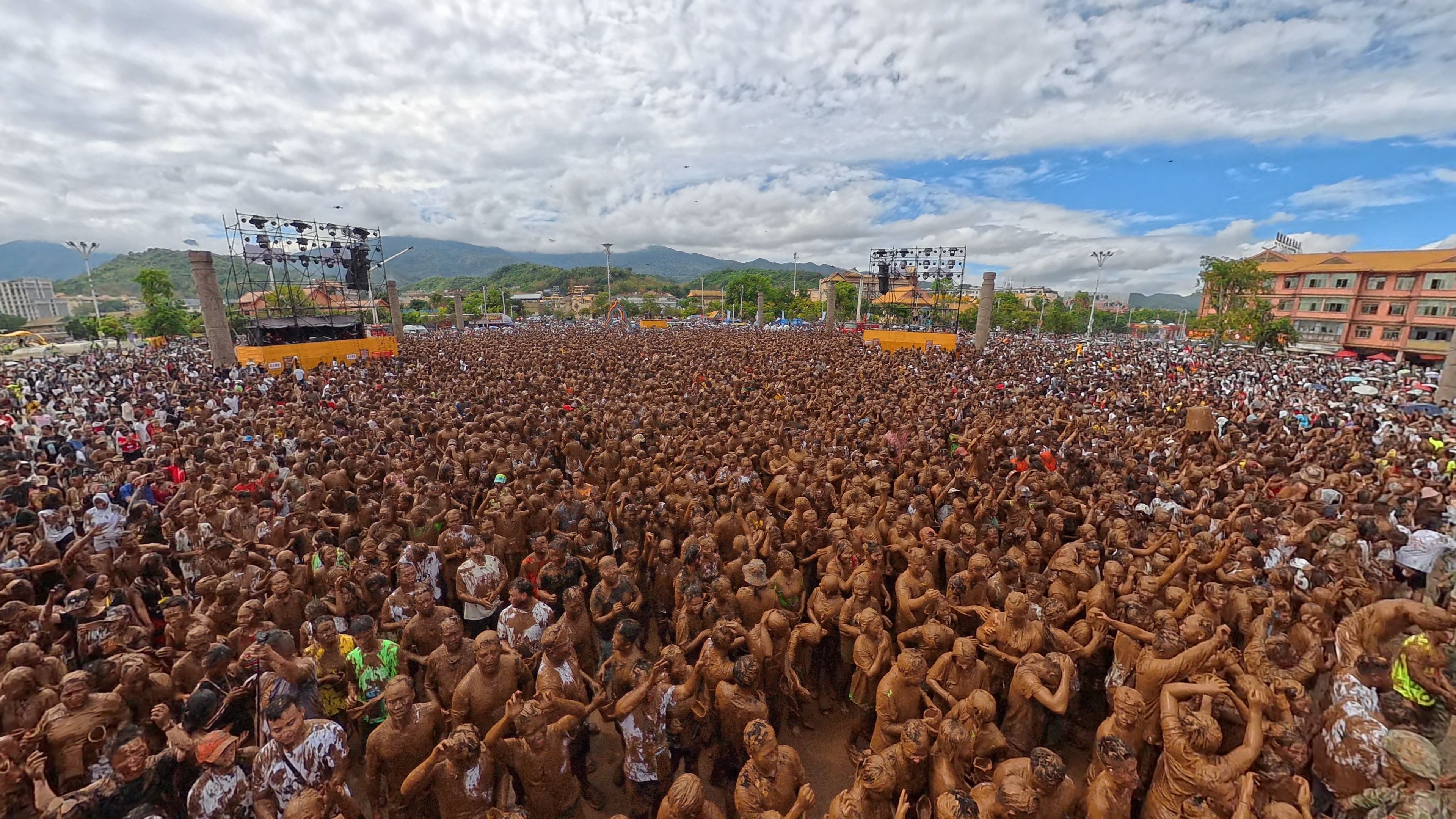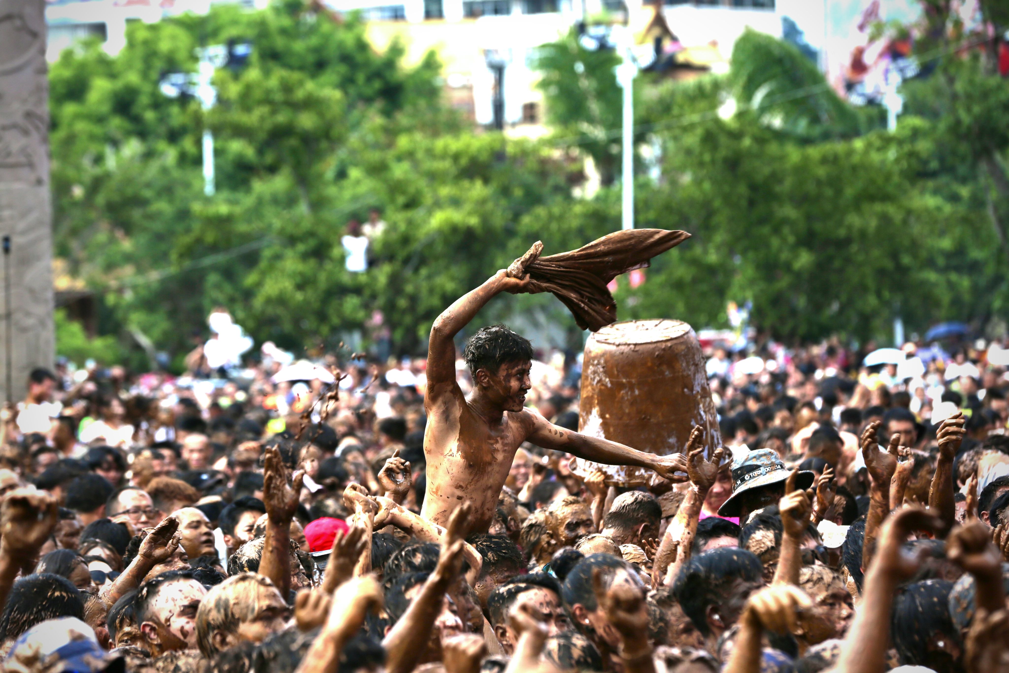 “五一”的第一天,云南省临沧市沧源佤族自治县上万人组队“玩泥巴”,纷纷把“祝福”抹在别人脸上。即便泥浆“盖”满全身,他们脸上笑容丝毫不减。雪白的牙齿在泥污中格外醒目,不“染”一身泥污绝不罢休。