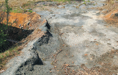 在新义公司北侧,这条运煤公路的起点,记者远远望见一些土地是黑色的。这是一处读者来信里所说的煤渣倾倒地,煤渣让这片土地呈现黑色(见图①)。有的煤渣成堆堆放在路边;有的平铺在地里,形成20至60厘米不等的厚厚的煤土层。