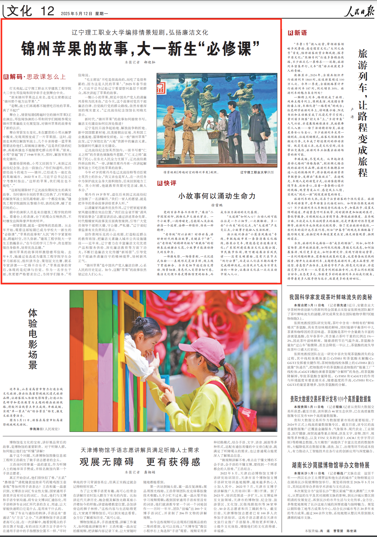 一部情景剧,就是一堂特殊的思政课。从去年开始,观看这部短剧已成为学校大一新生的“必修课”。“苹果的故事和‘人民’两个字紧紧相连,跨越时空,历久弥新。”建筑工程学院大一学生王勃瀚表示,“在今后的学习工作中,我也要加强自身修养,培育优良品德。”