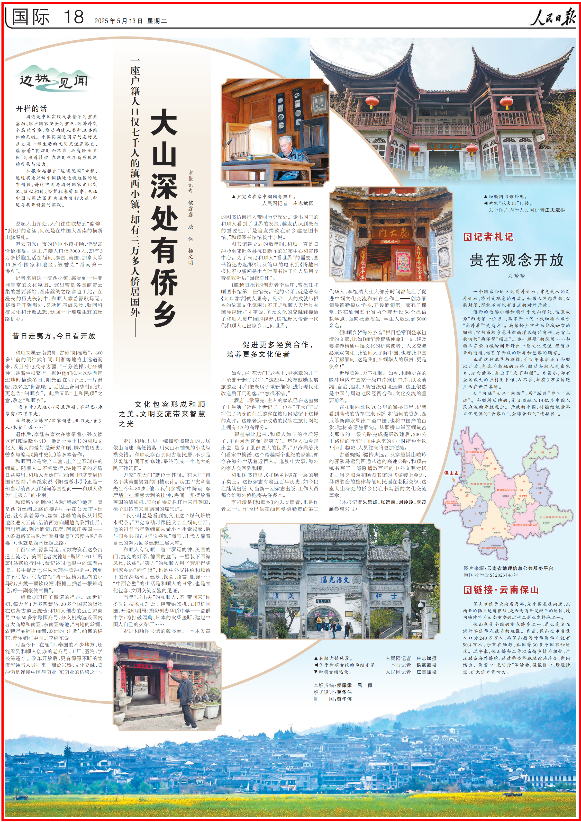 记者来到这一滇西小镇,感受到一种非同寻常的文化氛围。这里曾是各国商贾云集的重要驿站,西南丝绸之路穿越于此。在漫长的历史长河中,和顺人靠着骡驮马运,将商号开到海外,又驮回四海风物,驮回科技文化和开放思想,驮回一个璀璨生辉的丝路侨乡。