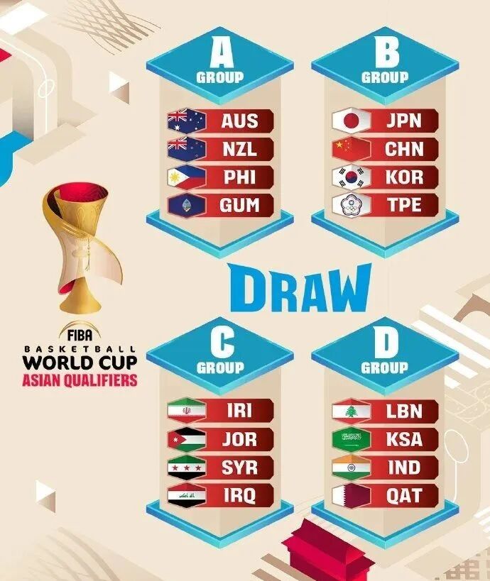 2027男篮世界杯预选赛分组揭晓,中日两队同组