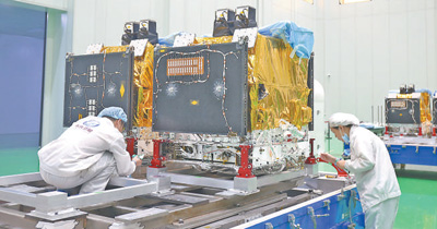 “吉林一号”宽幅卫星总装现场。