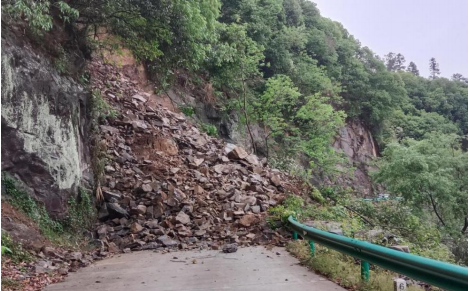 22日6时40分,山体崩塌,崩塌量约1000立方米,导致道路中断。宏潭乡政府接报后,立即启动应急预案,继续实施交通管制,同步调配应急资源,协调机械车辆赶赴现场进行抢通抢险作业,22日16时该路段恢复通行。由于风险隐患发现处置及时,无人员伤亡。