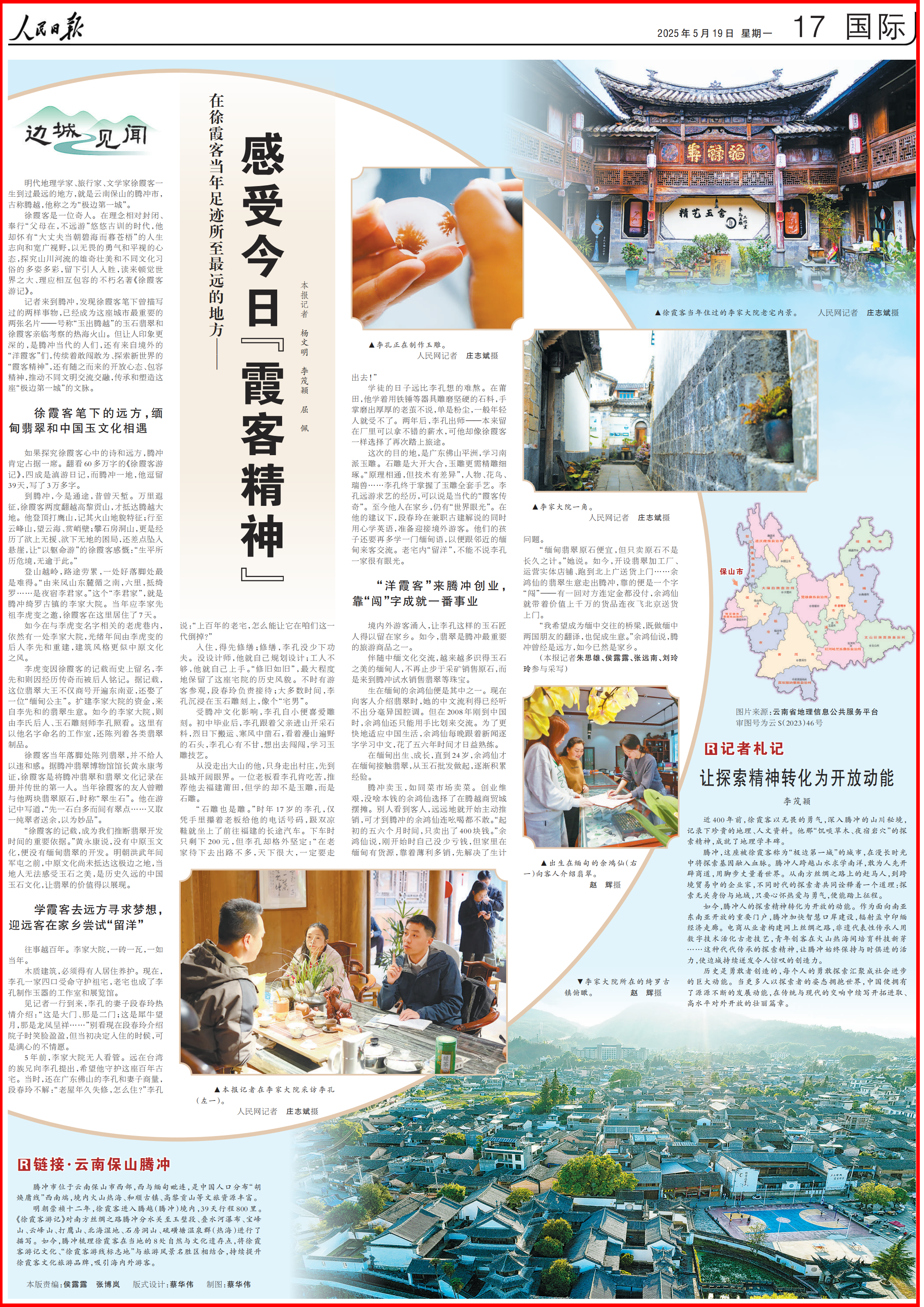 在理念相对封闭、奉行“父母在,不远游”悠悠古训的时代,他却怀有“大丈夫当朝碧海而暮苍梧”的人生志向和宽广视野,“霞客精神”续写至今,与云南开放心态、包容精神同频共振。