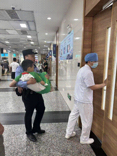 民警抱起晕倒男孩:“不怕,到医院了!”