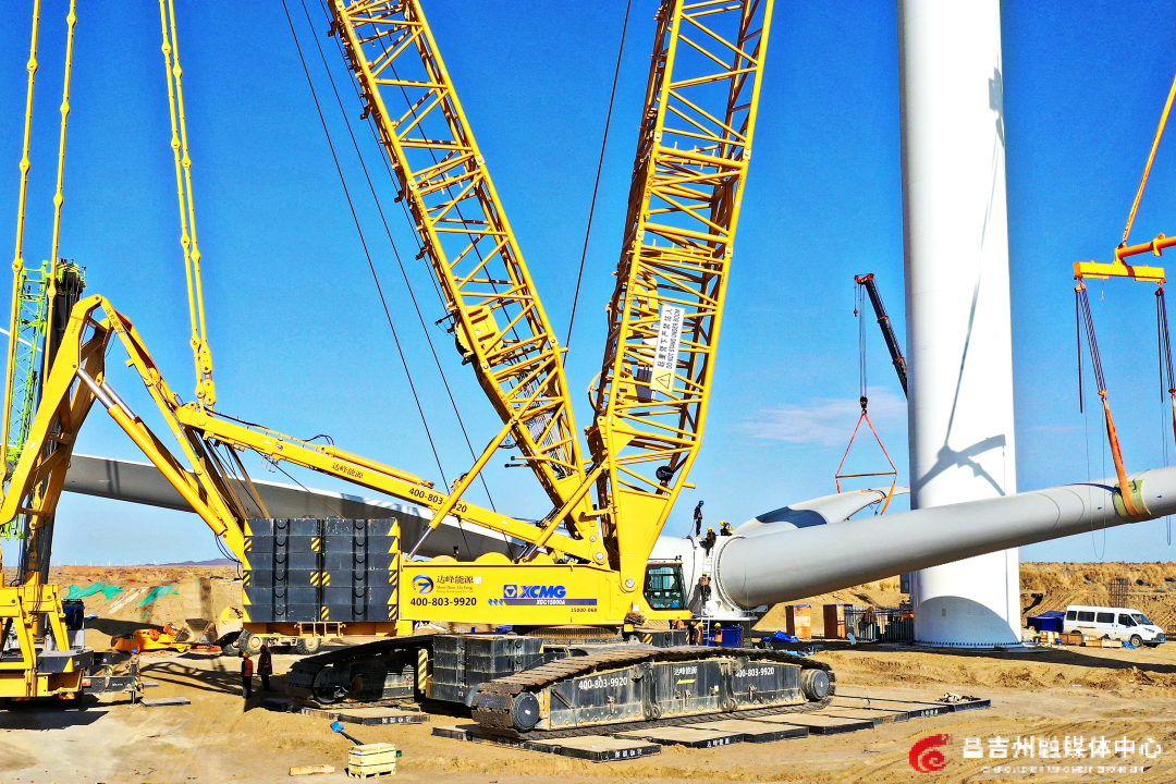 在位于奇台县的昌吉国投奇台县180万千瓦风光氢储一体化项目现场,风机吊装正有序进行,项目建成后预计每年输出绿电40.03亿度,年内计划实现并网发电。