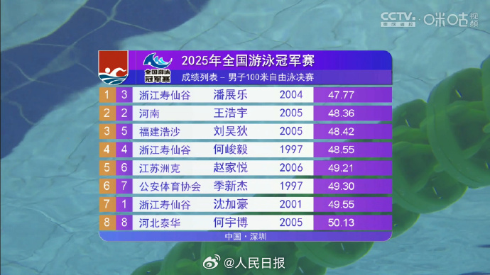 祝贺!潘展乐拿下全国游泳冠军赛男子100自冠军