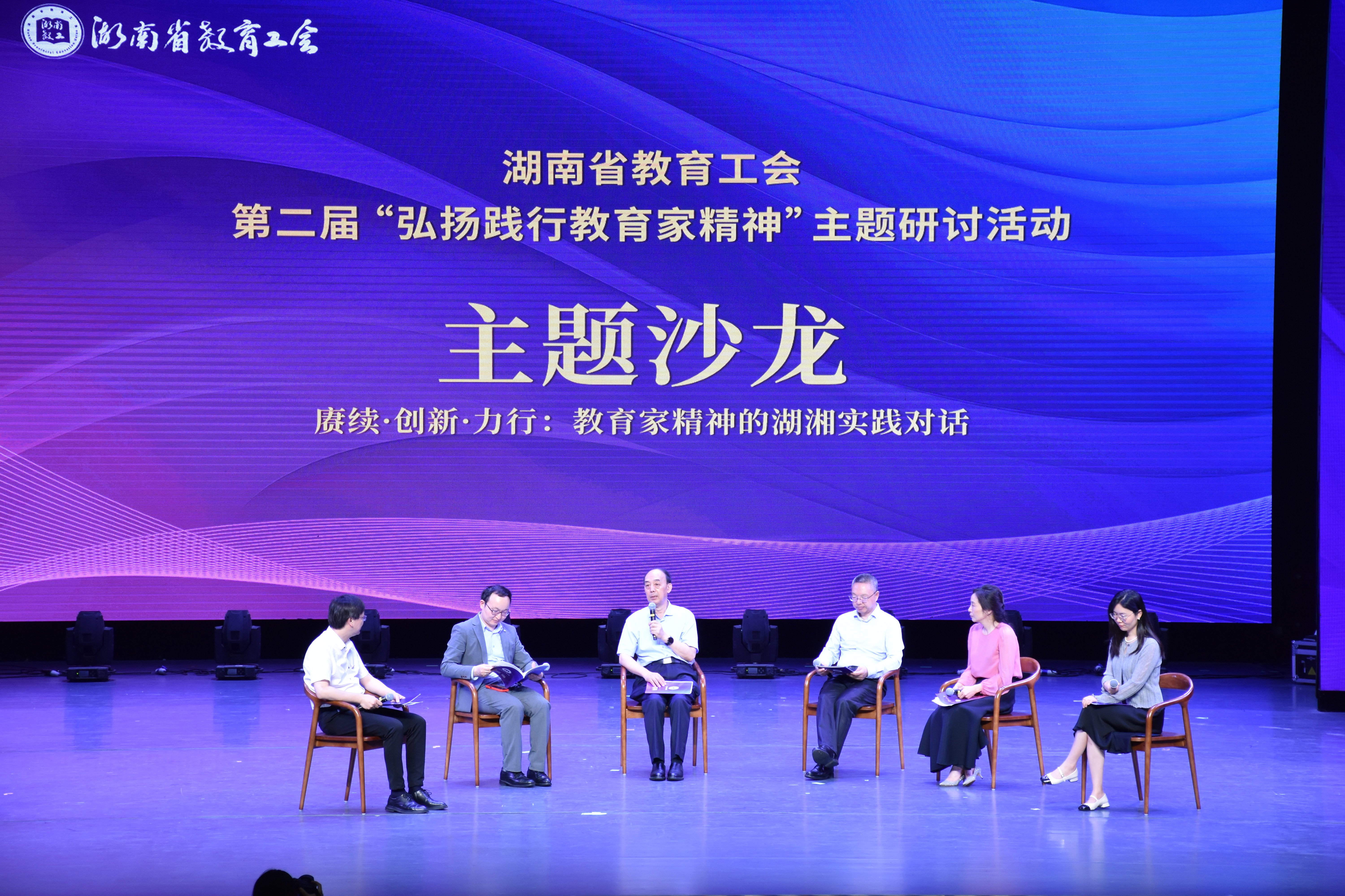 在“湖湘实践对话”主题沙龙中,专家学者与一线教师展开深度探讨。从教育高质量发展讲到教育制度创新,从徐特立“三个第一”等教育传统讲到人工智能赋能等现实课题,从思政教育创新实践讲到教师职业倦怠难题……思想的碰撞,勾勒出教育家精神从理念到行动、从历史到未来的完整图景,湖湘教育家的精神火炬正穿越时空,照亮育人征程。