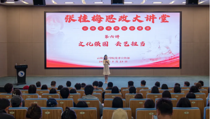 2025年5月23日,张桂梅思政大讲堂——云南艺术学院分课堂第六讲在学校图书馆报告厅开讲。讲堂以“文化强国·云艺担当”为主题,从“文化传承的云艺实践”“艺术与时代的对话”“从理念到行动的跨越”三个维度带领现场师生开启了一堂思想与实践交融的思政“大课堂”。