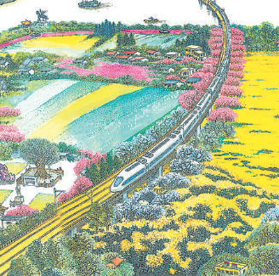 长卷描绘的重点是周口中心城区,包含几十处重要景点、10座大桥,人物、车辆、船只、房屋数以千计。着色前,我曾反复揣摩,在追求色彩统一的同时,又希望富于变化,更重要的是体现新时代气象,于是决定把长卷分为春、夏、秋、冬四个章节,尽显周口四季风情。