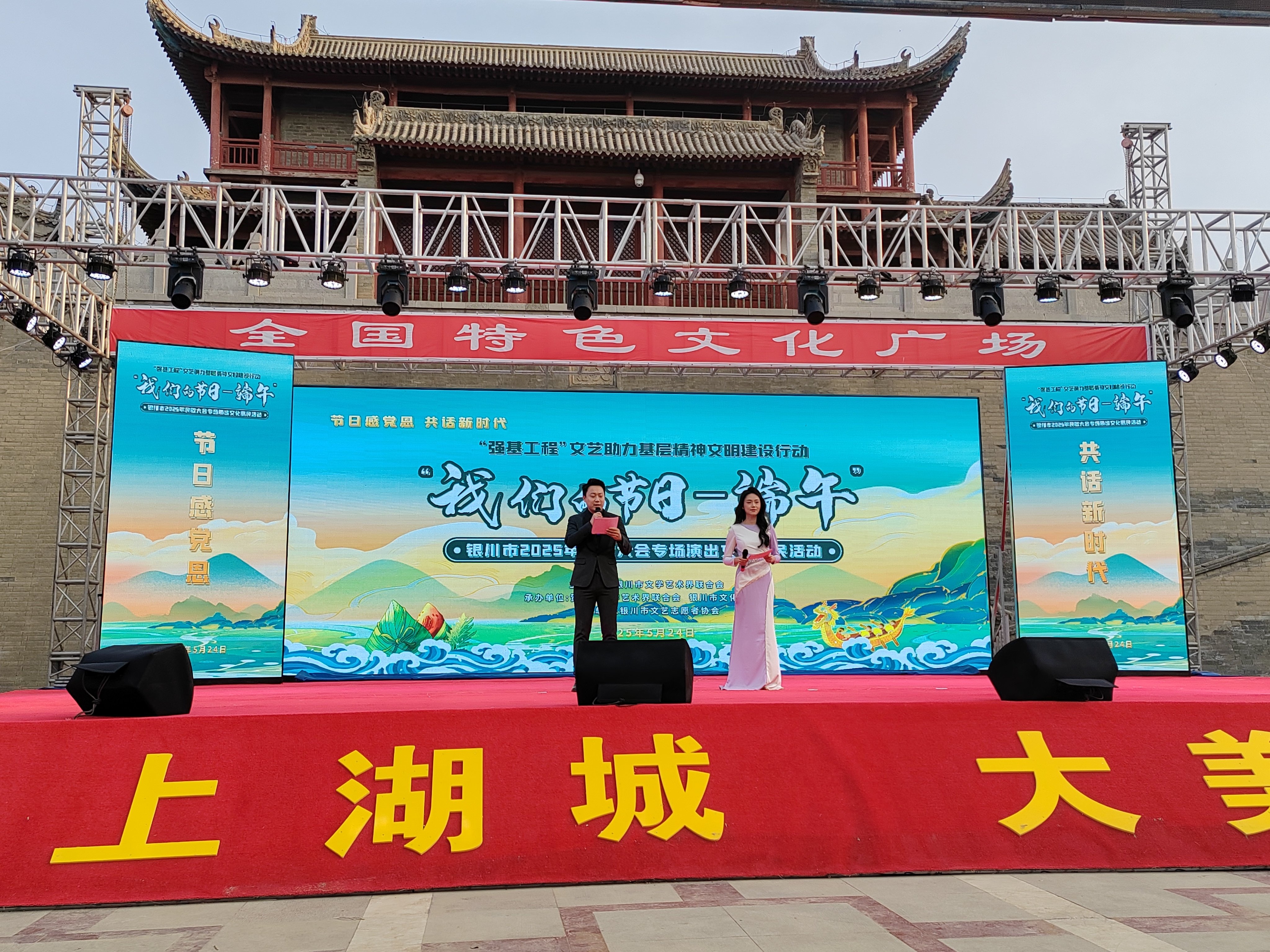 近日,“强基工程”——文艺助力基层精神文明建设行动暨“我们的节日·端午”凤飞大舞台民歌大会专场演出在玉皇阁广场盛大举行。活动以民歌为纽带,传唱花儿,讴歌黄河,奏响民族交响,让观众在优美的旋律中领略中华优秀传统文化的魅力,度过一个美好的端午之夜。