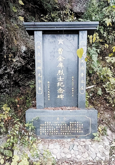 记者日前依据线索到仙居县采访调查。在仙居县横溪镇,记者遇到了曹金库烈士的孙子曹真富。他介绍,“我爷爷于1935年土地革命战争时期英勇牺牲,1988年被民政部认定为革命烈士,在仙居知名度很高。”