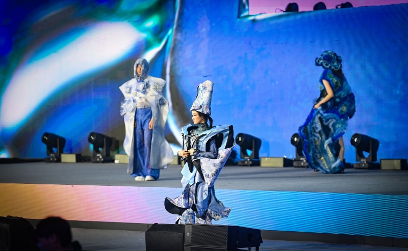 整场演出的重头戏——《昇·声——川美服装2025届优秀毕业作品展演》,充分展示了川美学子以针线为炬、以热爱为弦,在光影交错的轨迹中编织“昇”的壮阔图景,在色彩震颤的维度里奏响“声”的时代交响,共谱“昇·声”华章。