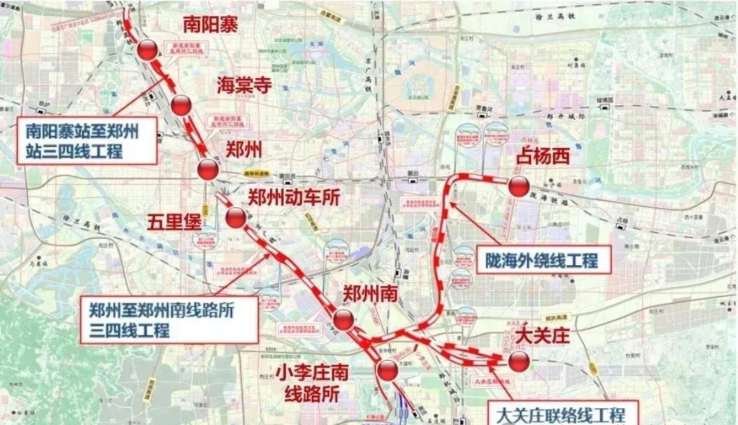 郑州南站及相关工程可研、初设已批复。先开工程用地已批复,施工场地已交付完毕。全部用地已完成勘测。7个标段施工单位已进场,于2025年全面开工。