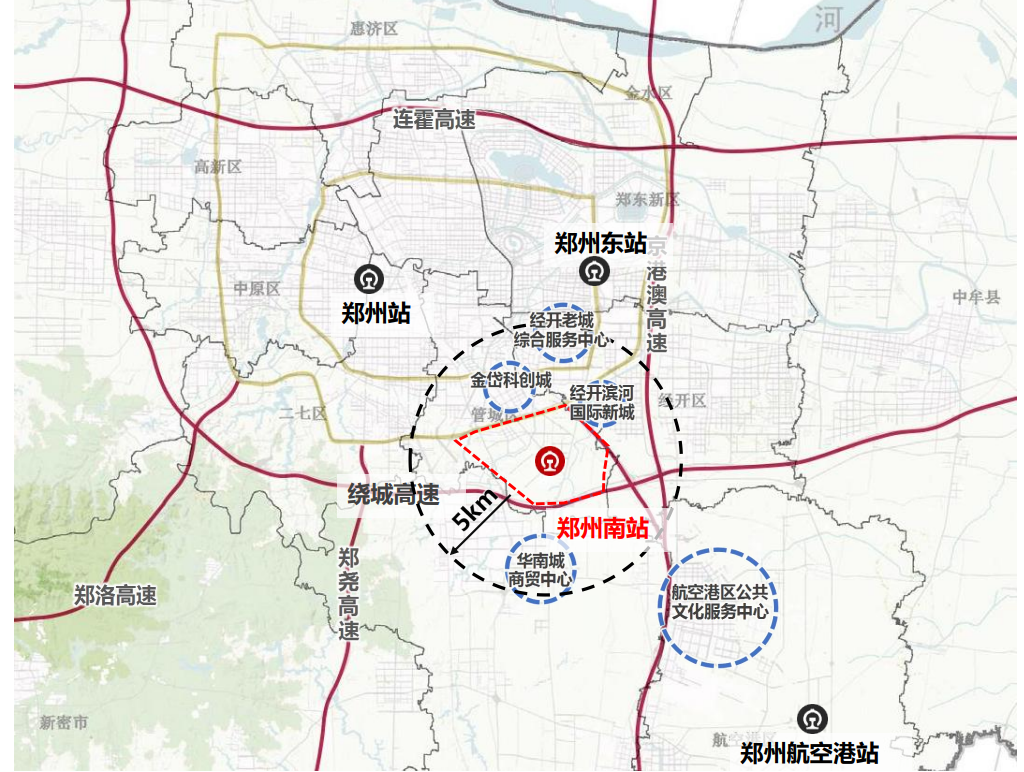 新建的郑州南站位于郑州市管城区,地理位置十分优越,距离郑州站约 13 公里,距离郑州东站约 12 公里,距离郑州航空港站约 25 公里,处于铁路枢纽的黄金地带,建成后,将成为郑州四大铁路枢纽中唯一以普速铁路为主、高铁城际为辅的铁路枢纽,对于优化郑州铁路枢纽布局、提升综合运输能力具有重要意义。
