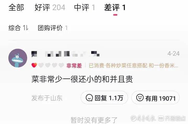 因为一条“菜量少”的差评火了,