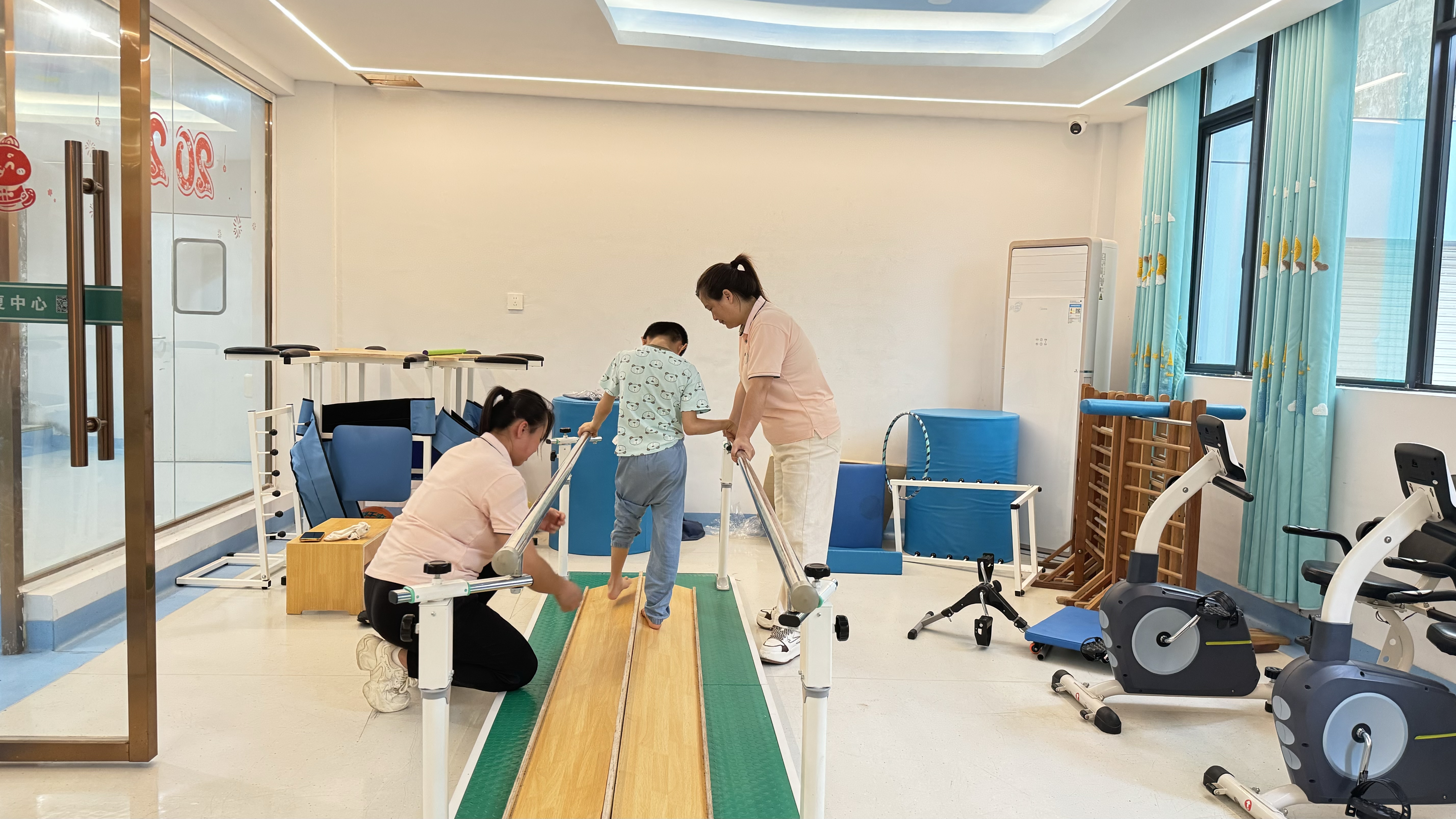 广西贺州平桂区儿童康复中心自助训练室内,9岁的脑瘫患儿小宇(化名)正踮着脚尖,颤巍巍地练习走路。他的母亲王女士攥紧拳头,眼眶泛红:"半年前,孩子连站都站不稳……"突然,小宇脚下一滑,康复师李老师立即伸手扶住,轻声鼓励:"慢慢来,我们再试一次!"