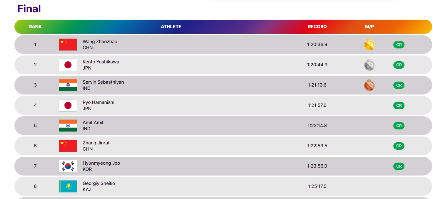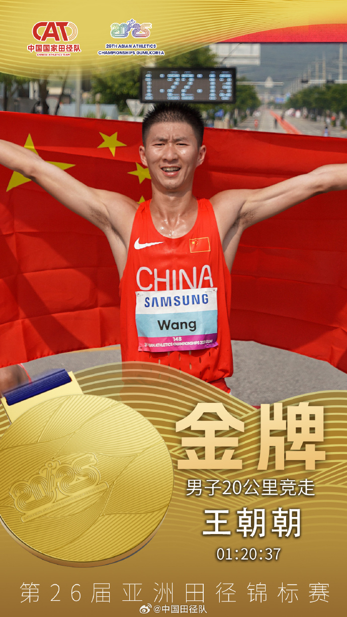 北京时间5月27日上午,2025年亚洲田径锦标赛在韩国龟尾拉开战幕。在率先展开的男子20公里竞走项目中,中国选手王朝朝以1小时20分36秒的成绩夺得冠军,为中国队摘得本届田径亚锦赛的首金。