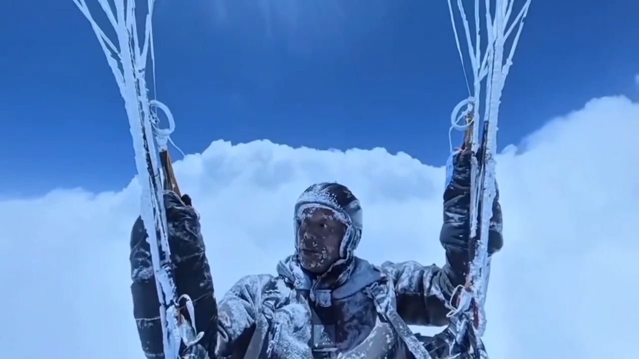 5月24日,有网友发布视频称:一名滑翔伞爱好者在祁连山区域进行滑翔伞飞行时,意外被云吸至8000多米高空,全身结冰,所幸控伞安全降落。
