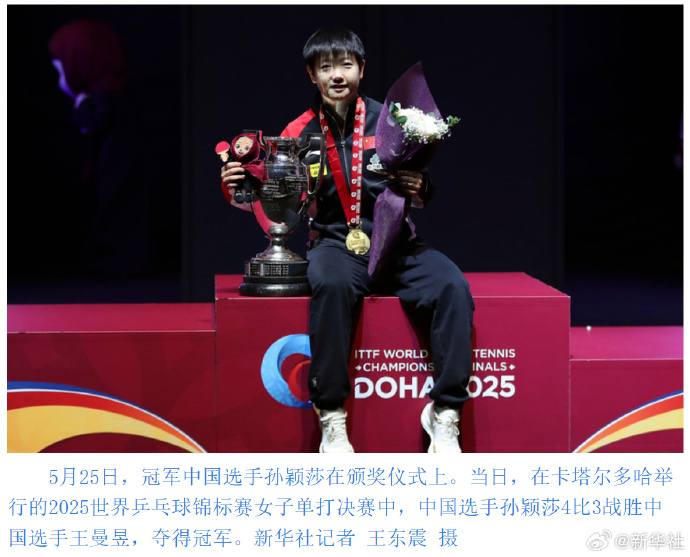 在国际乒联27日公布的最新一期世界排名中,多哈世乒赛女单冠军孙颖莎继续以较大优势领跑,并以11900分刷新现行世界排名体系下的积分纪录。中国队选手在女单、男单、女双和混双四个单项上占据世界第一。