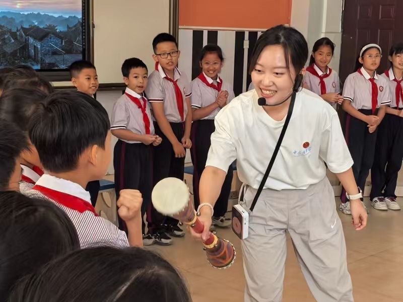 学生们在《同坐小竹排》中感受壮族韵律,在《赶圩归来啊哩哩》里体验彝族风情,改编舞曲《瑶山乐》则让孩子们随旋律翩然起舞。“老师带我们又唱又跳,音乐课特别有趣!”三年级学生约约说。