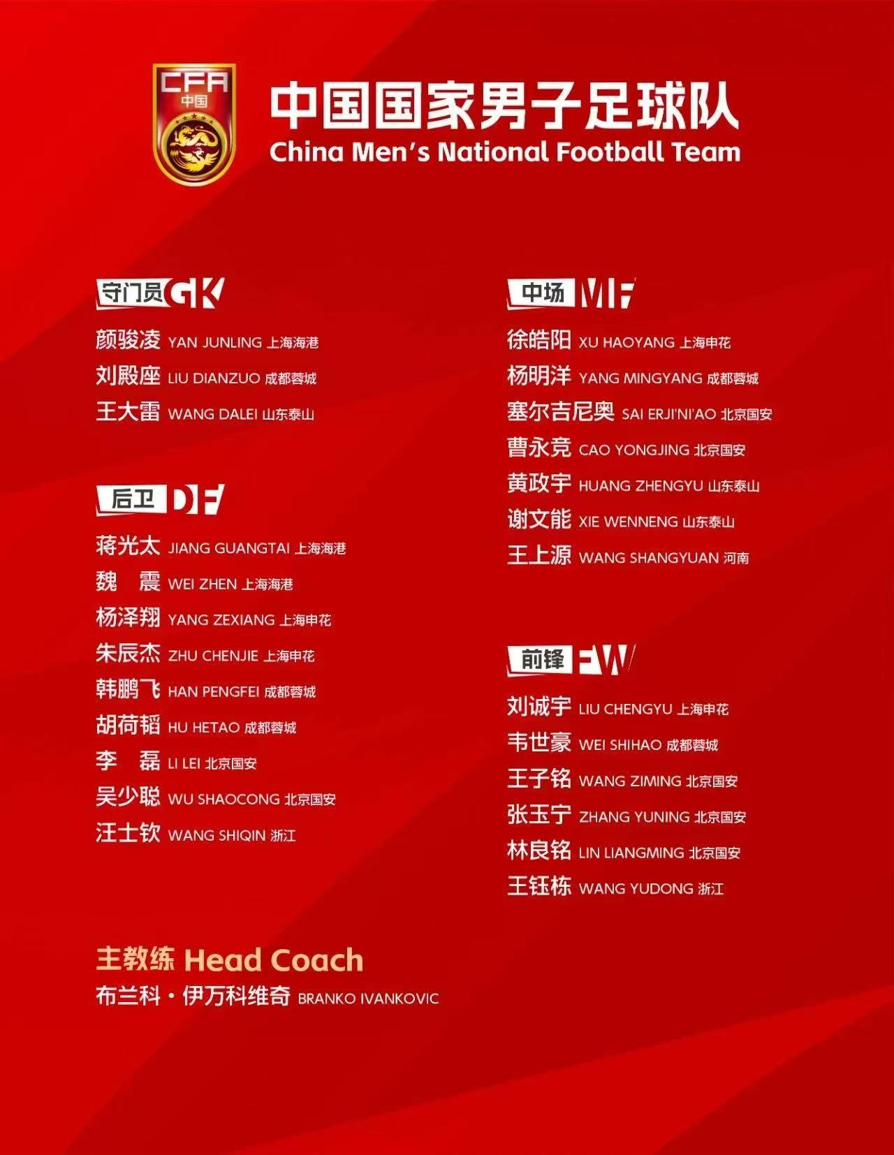 北京时间6月2日下午,中国足协官方公布了2026美加墨世界杯亚洲区18强赛客战印尼队的25人出征大名单。