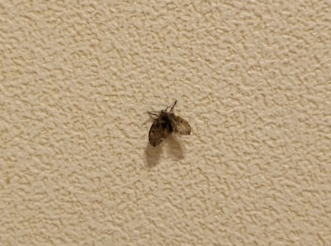 这种看着像蛾子的小虫子叫蛾蚋(ruì),也称蛾蠓,是自然界中最成功适应城市下水道生活的昆虫。居家最常见的一种叫白斑蛾蚋(Clogmia albipunctata),因其翅膀上的白色斑点及全身似飞蛾一般的绒毛而得名。