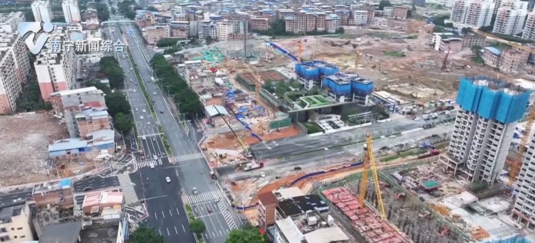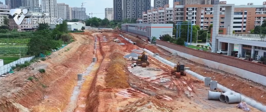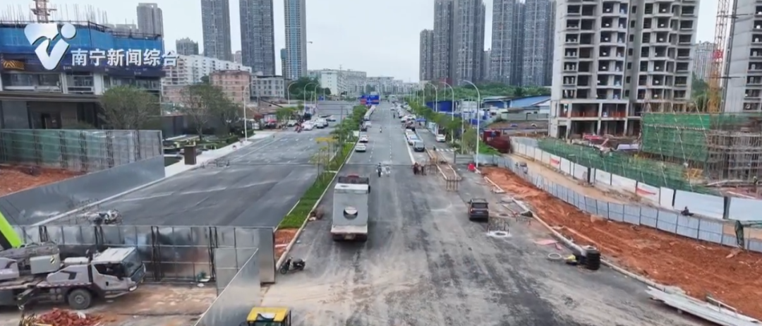 其项目北段也同样不断加速推进施工进度,据南宁建设发展集团有限责任公司现场管理工程师蒋熠介绍,这个项目目前是已经完成了整个进度的70%左右,目前是在做电力迁改,预计今年7月完成全部施工。
