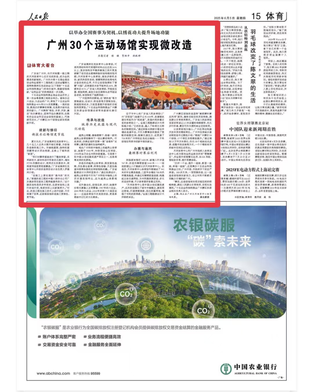 广东省奥林匹克体育中心体育场,可再利用材料和可再循环材料占比达到16%以上,复杂结构自平衡拆解施工技术更是破解了老旧逃生楼梯拆除时结构稳定性问题;天河体育中心体育场,高效多联机系统、新风热回收系统、智慧照明系统等电机设备系统的应用,不仅让老场馆拥有了智慧“大脑”,还使建筑本体节能率达20%、降碳率达45%;广东省人民体育场,节能变压器、智能照明、高效分体空调等先进节能设备进场,有效降低了能源消耗……