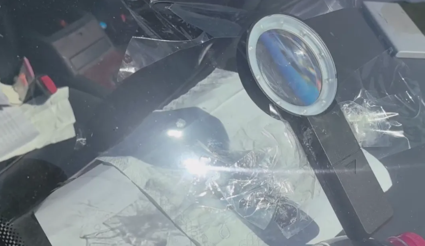 在密闭高温车内,放大镜被太阳直射40分钟后,聚焦点处的纸巾被引燃。将纸巾移除后,聚焦点又将车内饰烧焦,并有浓烟及刺鼻气体产生。