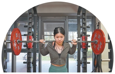 咬紧牙关,调整腰带卡扣,用肩胛骨锁住杠铃,屈膝下蹲,爆发向上。训练基地里,郑晓萱(见图,中国科学技术大学供图)正在深蹲架前尝试突破。