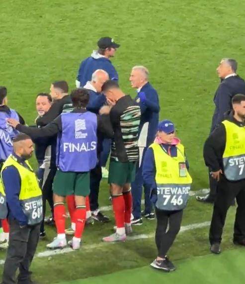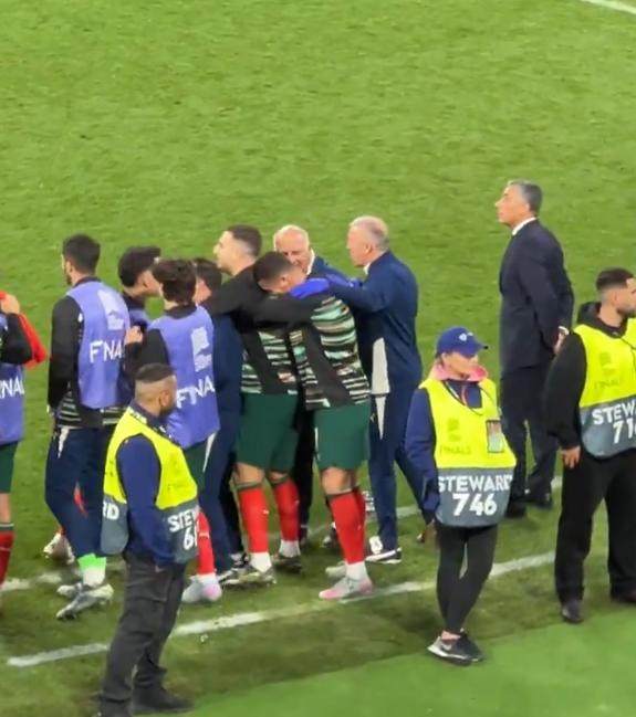 葡萄牙夺冠后庆祝时,C罗两次跟葡萄牙队主教练罗伯托·马丁内斯拥抱到一起。第一次,C罗还亲吻了马丁内斯的光头。在采访中, C罗也夸奖了葡马丁内斯。