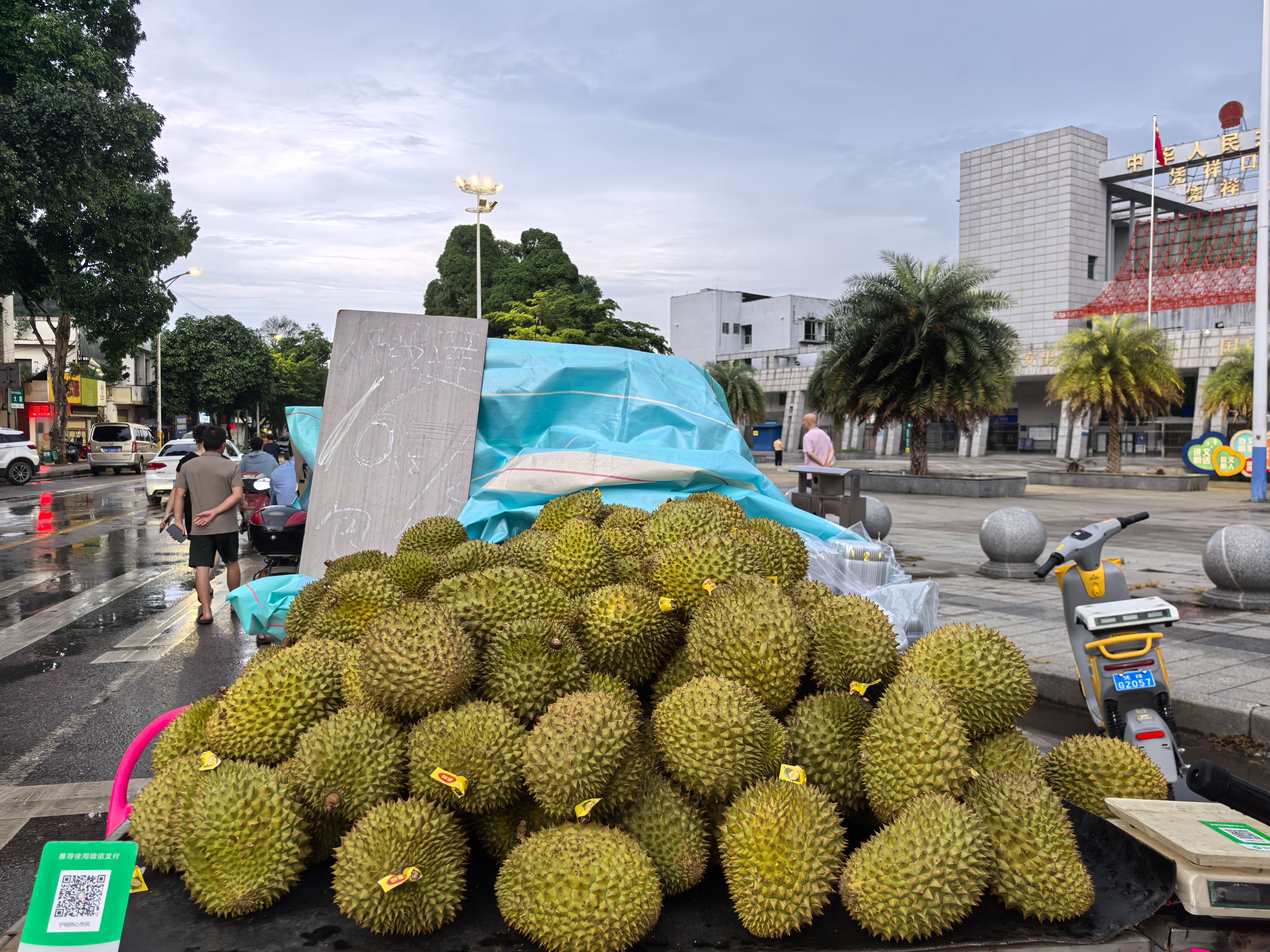 凭祥站外,榴莲销售火热。马金萍 摄