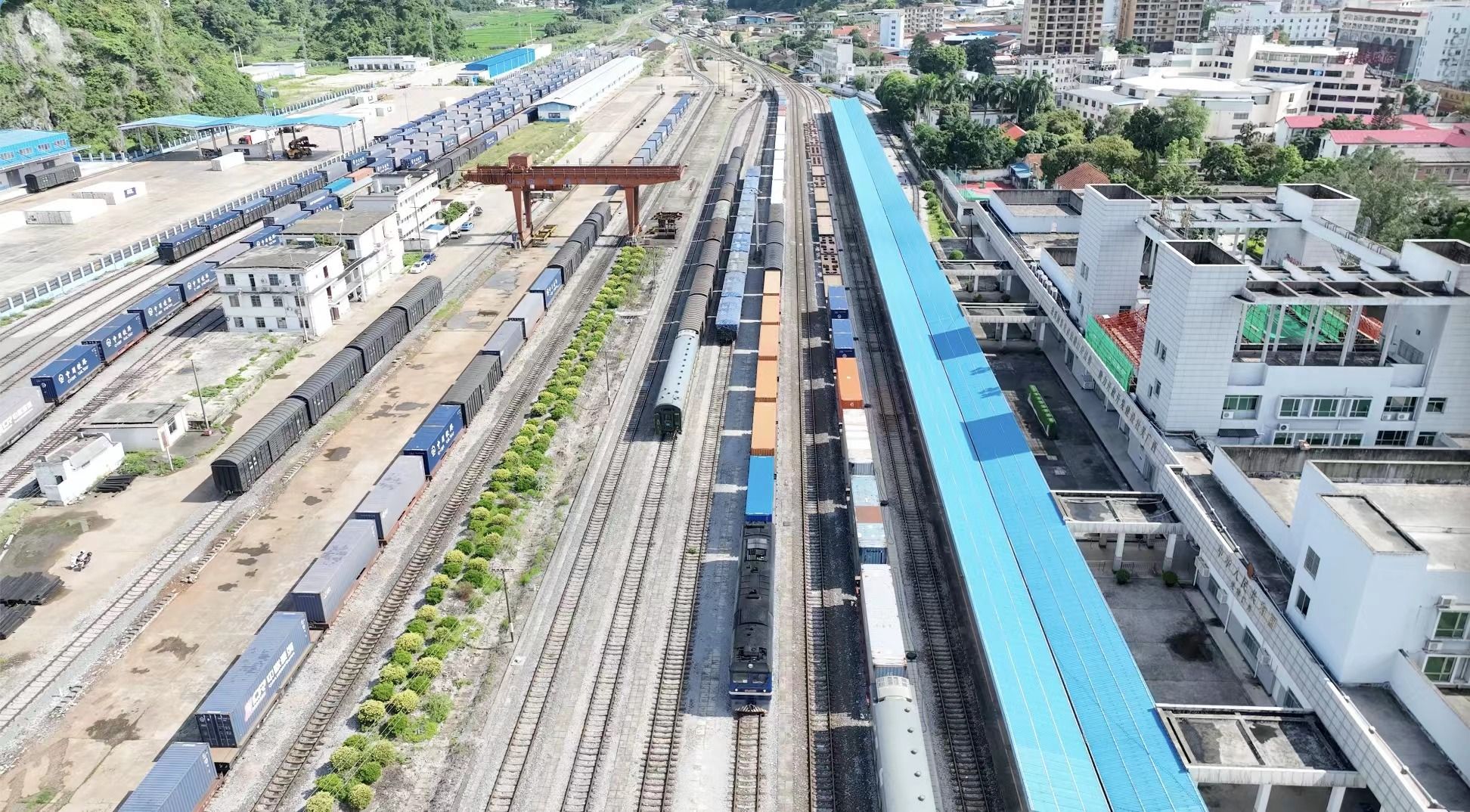 6月9日下午,一列自越南同登站驶来的运载174吨东南亚榴莲、山竹等水果的中越跨境货物列车抵达中国广西凭祥站。李伊 摄