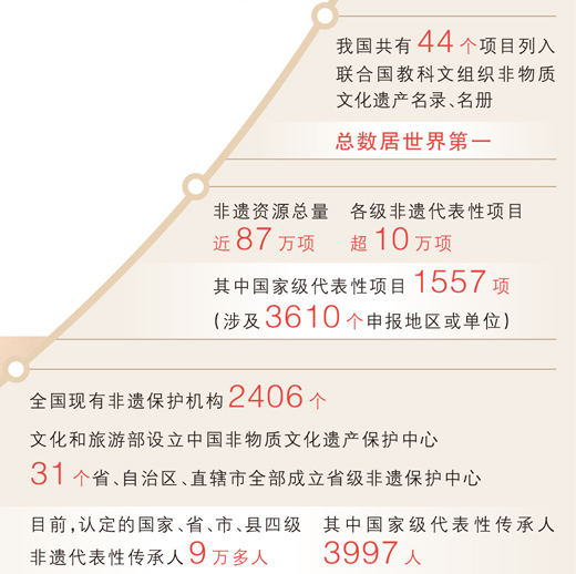 一项项非物质文化遗产见证着悠久历史、承载着乡土情感,也在一代代非遗传承人的守正创新中焕发新的生机、抽出新的枝丫。