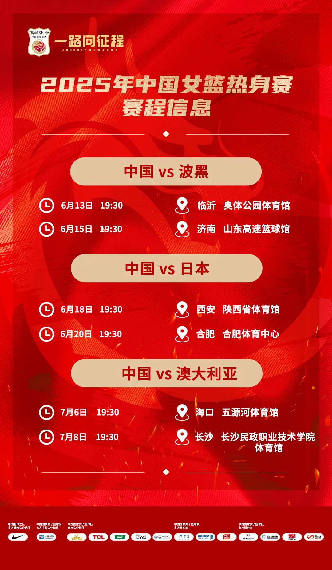 自6月13日起,中国女篮将在未来的26天时间内辗转6座城市,同波黑女篮、日本女篮、澳大利亚女篮共进行6场热身赛,通过系列热身赛进一步检验集训成果。宫鲁鸣表示,我们期待通过即将到来的热身赛,检验前期的训练成果,并不断进行调整,以昂扬的精神面貌迎接亚洲杯的挑战。