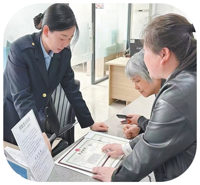 古塔区政务服务中心工作人员(左)为群众办理营业执照。 |