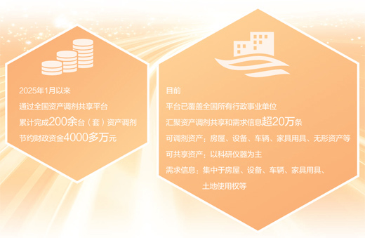 2025年1月,财政部依托预算管理一体化系统,建立全国资产调剂共享平台。目前,平台已覆盖全国所有行政事业单位,累计完成200余台(套)资产调剂,节约财政资金4000多万元,实现了资产梯度使用和物尽其用,唤醒了“沉睡”资产。