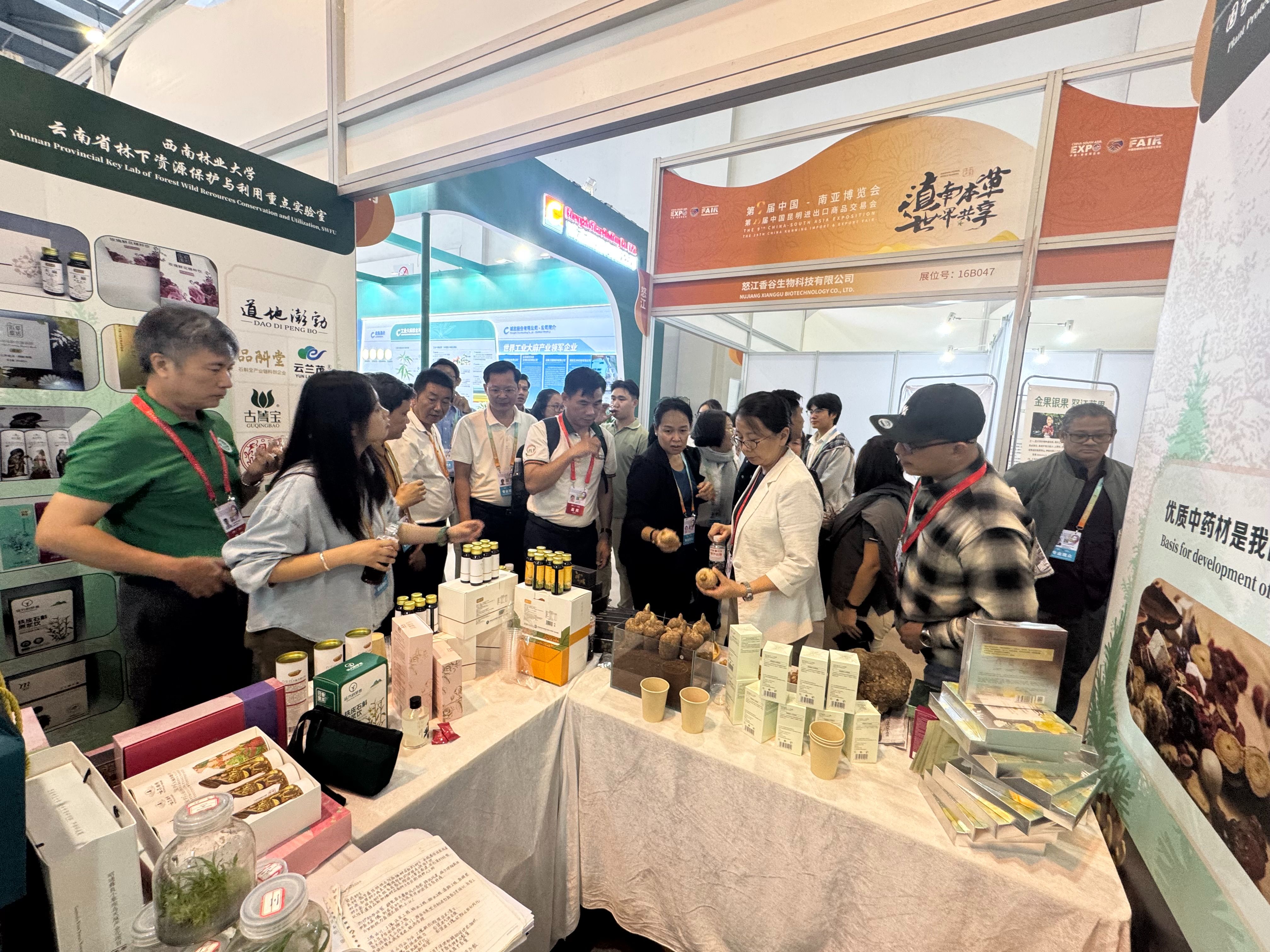外宾参加第9届中国—南亚博览会并参观西南林业大学林下资源保护月利用重点实验室展台。