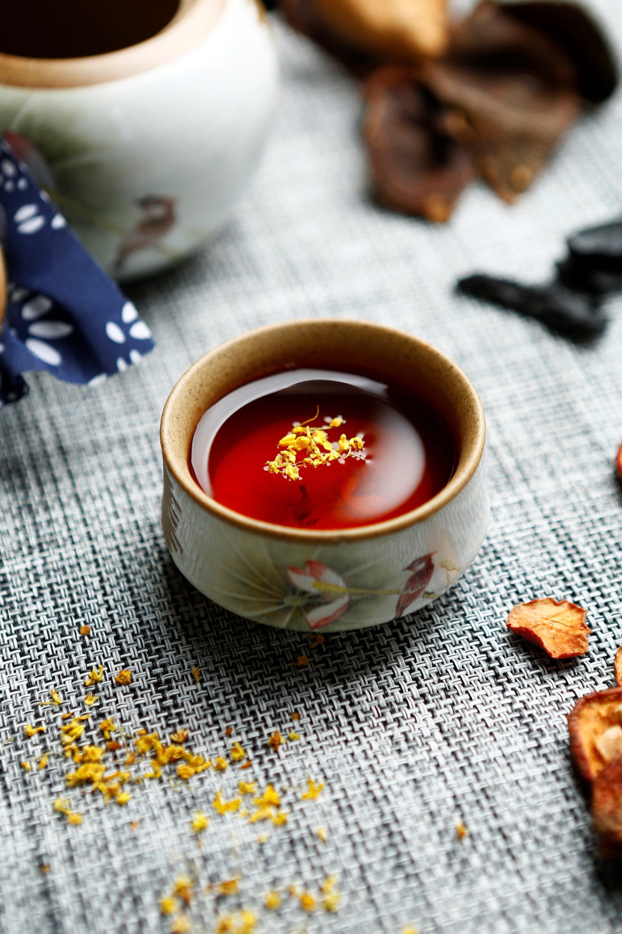 (1) 茶饮特点:乌梅,为青梅熏制而成,能生津止渴,能使浮越在上的虚火归位。配合健胃消食化肉食积的山楂、陈皮配甘草和胃健中,清香怡人的桂花,煮一锅口感酸甜,健脾胃,消食滞的茶饮。此茶能缓解咽喉异物感,久咳少痰,食欲欠佳等不适。