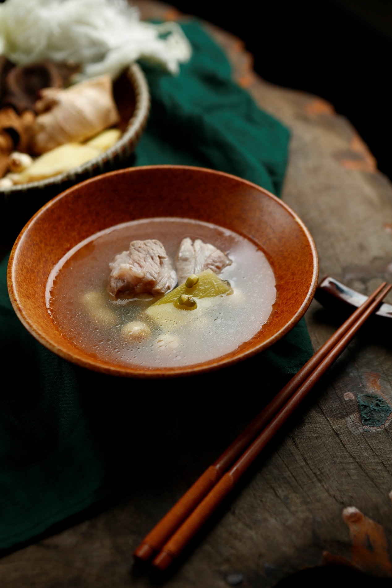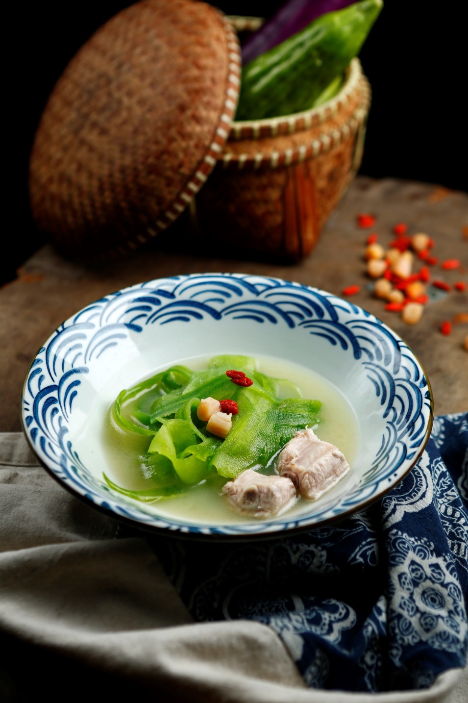 (1)菜品特点:黄豆性味甘平,益气润肌肤。猪骨能补中益气、养血健骨,搭配具有清热消暑、清肝明目作用的夏季当令食材苦瓜,特别适合易上火而见口干口苦、眼目容易干涩充血人群的保健食用。