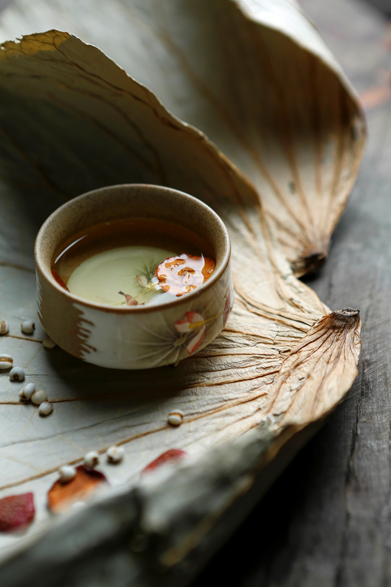 ⑵放入茶壶内,加入适量热开水,加盖浸泡10分钟,即可饮用。