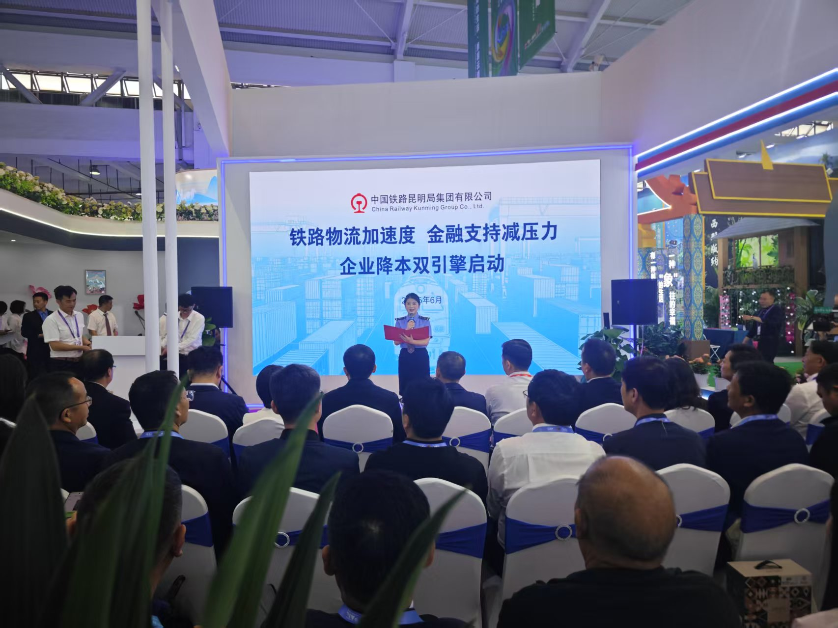 签约仪式于6月20日上午在昆明滇池国际会展中心10号馆举行,国铁昆明局有关负责人表示,国铁昆明局作为全国唯一准轨米轨并存的铁路局集团,已构建起以中老、中越、中缅三条国际大通道为核心的国际化物流网络。2024年,国铁昆明局完成货运发送量7427万吨,创历史新高;2025年货运量预计实现新突破。为落实“降低全社会物流成本”的决策部署,国铁昆明局依托铁路95306平台,创新推出“铁路运费贷”“贸易信用证结算”和“铁路单证融资”三项专属金融服务,具有“两低两快”(利率更低、门槛更低、流程更快、放款更快)的特点。截至目前,已有83家企业受益,授信总额达7.43亿元,累计支付预付款3.18亿元,有效缓解了企业资金压力。